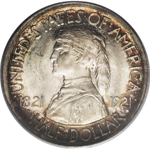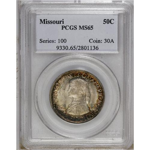 <B>1921 50C Missouri MS65 PCGS.</B></I> A rich complement of deep red-brown, green, and gold peripheral toning adorns the obverse of this noteworthy Gem. The reverse displays creamy beige coloration that yields to splashes of salmon patina near the center. Well struck with attractive satin luster and impeccably preserved surfaces that are free of all but the most trivial of imperfections.<BR><BR><b>Shipping:</b> Coin/Currency (<a target="_blank" href="http://www.heritageauctions.com/common/shipping.php">view shipping information</a>)