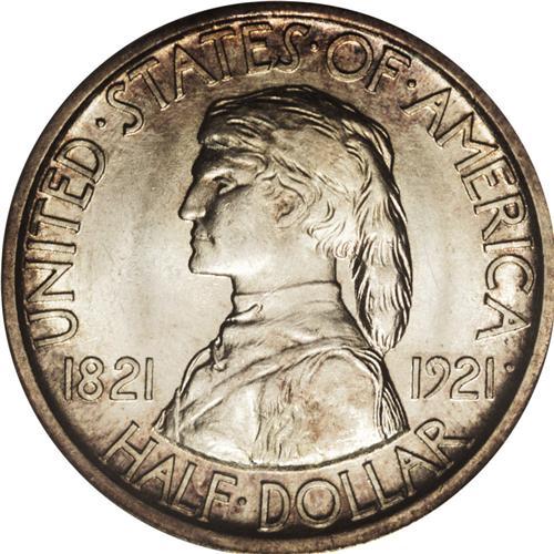 <B>1921 50C Missouri MS65 PCGS.</B></I> Delicate khaki-gold patina is most evident near the margins. A lustrous and suitably struck representative of this elusive silver type. The reverse is well preserved, while the obverse field displays only moderate contact. PCGS has certified just 28 pieces finer (11/06).<BR><BR><b>Shipping:</b> Coin/Currency (<a target="_blank" href="http://www.heritageauctions.com/common/shipping.php">view shipping information</a>)