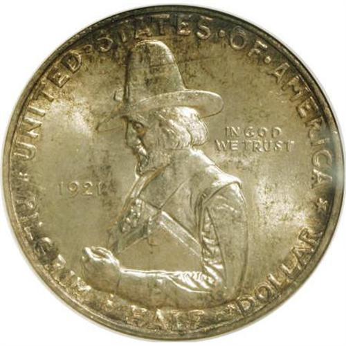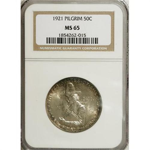<B>1921 50C Pilgrim MS65 NGC.</B></I> NGC Census: (644/156). PCGS Population (595/261). Mintage: 20,053. Numismedia Wsl. Price for NGC/PCGS coin in MS65: $520. (#9360)<BR><I>From The Frank DuVall Collection of U.S. Commemoratives.</B></I><BR><BR><b>Shipping:</b> Coins & Currency (<a target="_blank" href="http://www.heritageauctions.com/common/shipping.php">view shipping information</a>\)