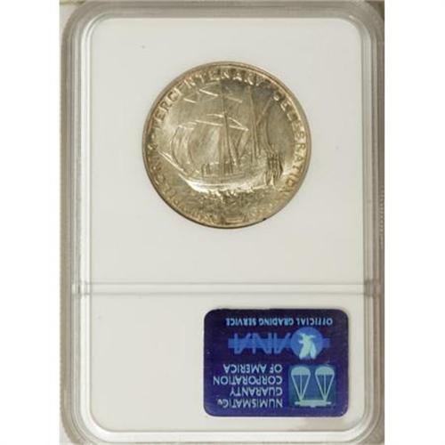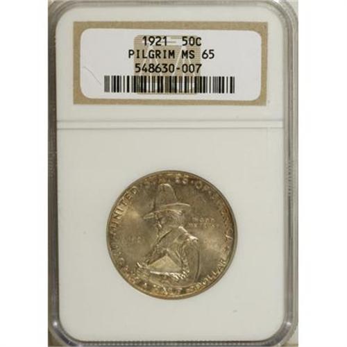 <B>1921 50C Pilgrim MS65 NGC.</B></I> NGC Census: (645/159). PCGS Population (608/263). Mintage: 20,053. Numismedia Wsl. Price for NGC/PCGS coin in MS65: $520. (#9360)<BR><BR><b>Shipping:</b> Coins & Currency (<a target="_blank" href="http://www.heritageauctions.com/common/shipping.php">view shipping information</a>)