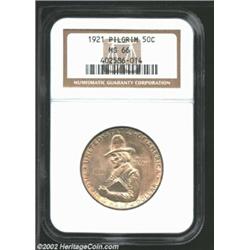1921 50C Pilgrim MS66 NGC. Subtle lilac and gold patina endows each side. A lustrous and well struck