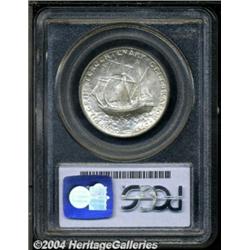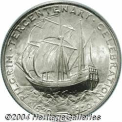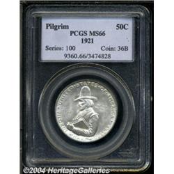 <B>1921<50C> Pilgrim MS66 PCGS.</B></I> Wisps of tan-gold patina overlay the subtle powder-blue surfaces of this lustrous Gem. The major devices are well struck, and among the peripheral legends, only the tops of UNITED STATES did not receive a full blow from the dies. The fields have little evidence of the clash marks often encountered on this issue, although the D and S from IN GOD WE TRUST are faintly visible to the right of the Mayflower. Considerably scarcer than the 1920 issue, which satisfied contemporary demand for the type.<BR><I>From the JFS Collection, the #1 All-Time PCGS Registry Set.</B></I> <BR><BR><B>Important notice:</B> Heritage usually auctions material at the rate of 200-250 lots per hour. On some occasions eBay Live bid software or the Internet may not be able to keep up with the pace of the auction. We recommend placing a realistic absentee bid now as insurance to avoid disappointment. Occasionally the auctioneer may eliminate or reject an eBay Live bid, and the auctioneer may also reopen a lot after the close of the eBay live bidding (usually because we missed an audience bid), and may reject your bid even if it shows you as the winning bidder. By bidding via eBay Live, you agree that Heritage may award the lot to another bidder at its sole discretion under the circumstances described above or any other reasonable circumstances. Since eBay bids are not shown to us until we open the lot on the floor, we treat those bids just like floor bids. In most cases the floor responds before the eBay bid is presented to us, due to Internet lag time, so for consistency we have made it a policy that floor bids are always considered first over tie eBay live bids. Also please note that all Heritage lots purchased through eBay Live carry a 20% Buyer's Premium. Please make sure you read the Terms and Conditions before you bid. </span></font></tr></table></td></tr></table>