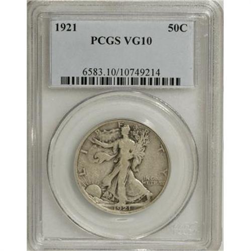 <B>1921 50C VG10 PCGS.</B></I> PCGS Population (45/442). NGC Census: (26/298). Mintage: 246,000. Numismedia Wsl. Price for NGC/PCGS coin in VG10: $201. (#6583)<BR><BR><B>Coin Engraver:</B> Adolph A. Weinman<BR><BR><b>Shipping:</b> Coins & Currency (<a target="_blank" href="http://www.heritageauctions.com/common/shipping.php">view shipping information</a>)