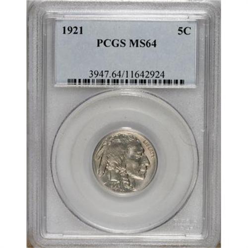 <B>1921 5C MS64 PCGS.</B></I> PCGS Population (285/375). NGC Census: (187/178). Mintage: 10,663,000. Numismedia Wsl. Price for NGC/PCGS coin in MS64: $324. (#3947)<BR><BR><b>Shipping:</b> Coins & Currency (<a target="_blank" href="http://www.heritageauctions.com/common/shipping.php">view shipping information</a>)