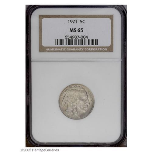 1921 5C MS65 NGC. Tan and dove-gray colors grace this 1921[5C] MS65 NGC.