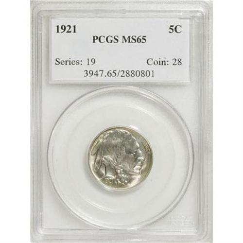 <B>1921 5C MS65 PCGS.</B></I> Well-defined for this Philadelphia issue with elegant green-gold and turquoise patina over each side. Carefully preserved surfaces with vibrant luster further enhance this Gem's excellent eye appeal.<BR><BR><B>Coin Engraver:</B> James E. Fraser<BR><BR><b>Shipping:</b> Coins & Currency (<a target="_blank" href="http://www.heritageauctions.com/common/shipping.php">view shipping information</a>)