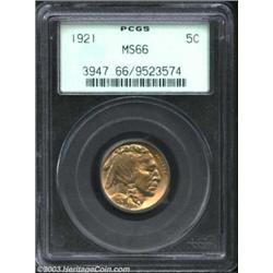 1921 5C MS66 PCGS. The obverse has luminous apple-green and peach patina, while the reverse has love