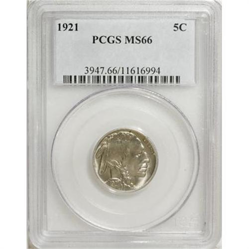 <B>1921 5C MS66 PCGS.</B></I> PCGS Population (132/18). NGC Census: (50/10). Mintage: 10,663,000. Numismedia Wsl. Price for NGC/PCGS coin in MS66: $1,325. (#3947)<BR><BR><B>Coin Engraver:</B> James E. Fraser<BR><BR><b>Shipping:</b> Coins & Currency (<a target="_blank" href="http://www.heritageauctions.com/common/shipping.php">view shipping information</a>\)