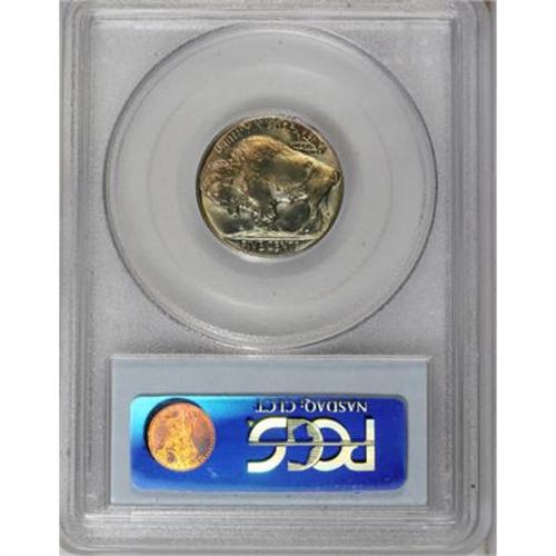 <B>1921 5C MS66 PCGS.</B></I> Beautiful ice-blue, gold, and cherry-red illuminate this shimmering and unabraded Premium Gem. The centers are exceptionally struck, and only the curve of the tail lacks intricate detail.<BR><BR><B>Coin Engraver:</B> James E. Fraser<BR><BR><b>Shipping:</b> Coins & Currency (<a target="_blank" href="http://www.heritageauctions.com/common/shipping.php">view shipping information</a>)