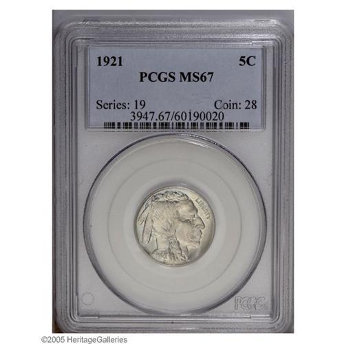1921 5C MS67 PCGS. This is a shimmering, silver-blue S 1921[5C] MS67 PCGS.