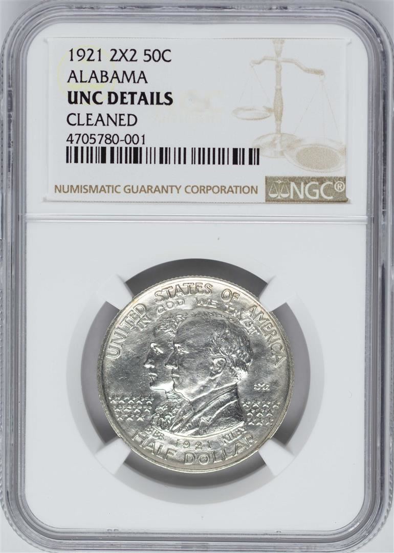 One 1921 Alabama 2x2 Centennial Commemorative Half Dollar Coin NGC Unc Details. NGC Certified.