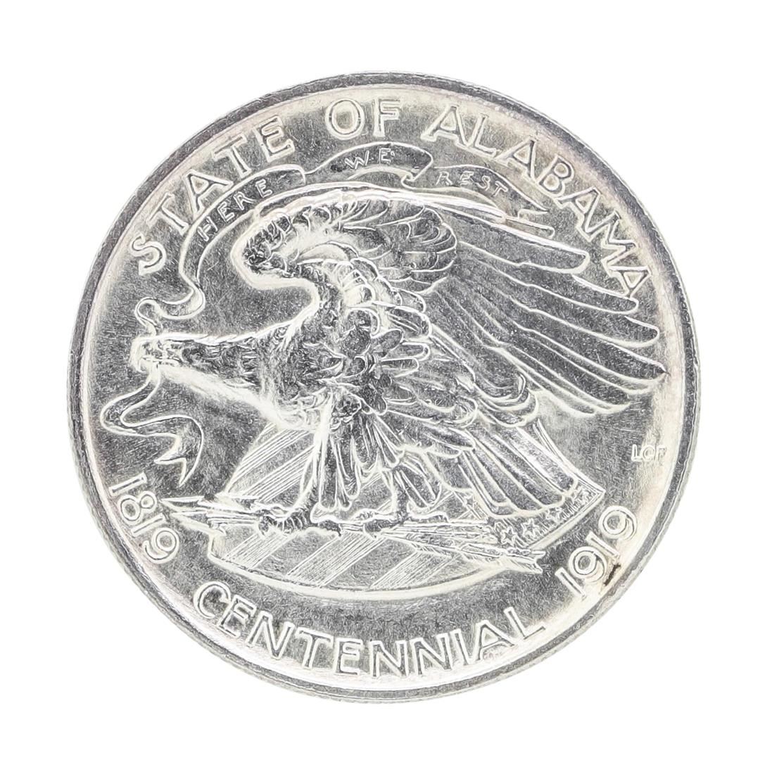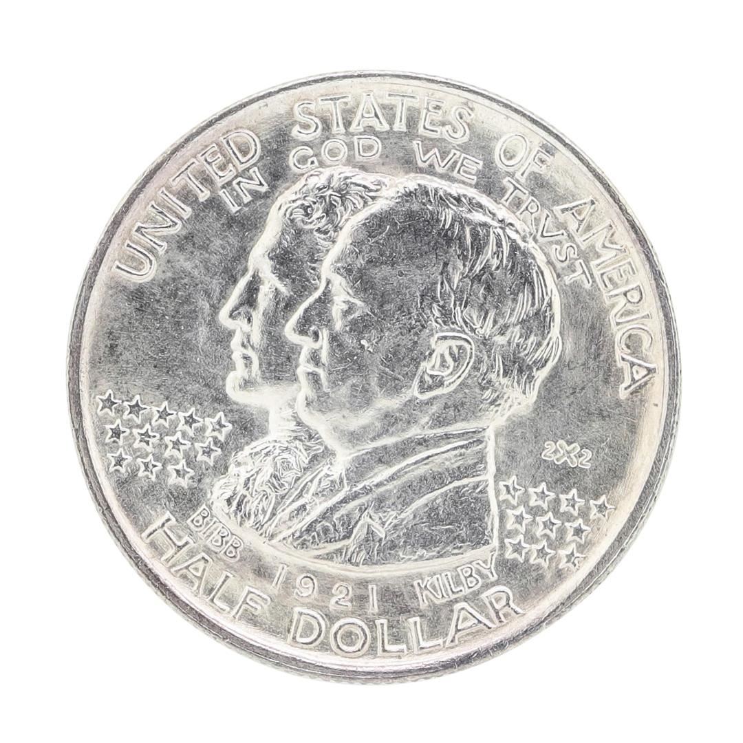One 1921 Alabama 2x2 Centennial Commemorative Half Dollar Coin.