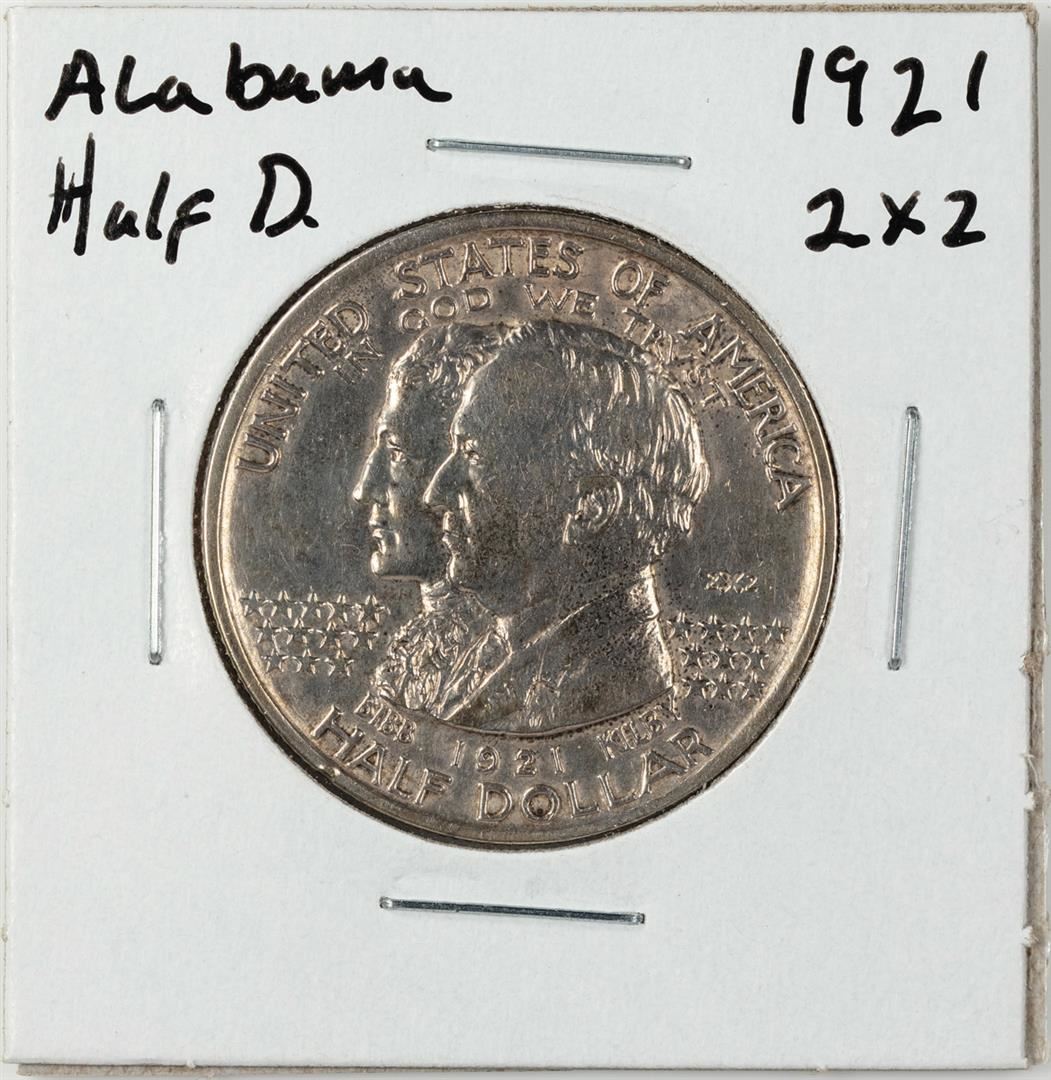 One 1921 Alabama 2x2 Centennial Commemorative Half Dollar Coin.