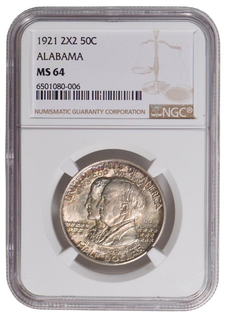 One 1921 Alabama 2x2 Commemorative Half Dollar NGC MS64.