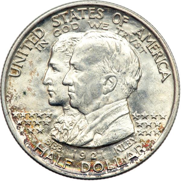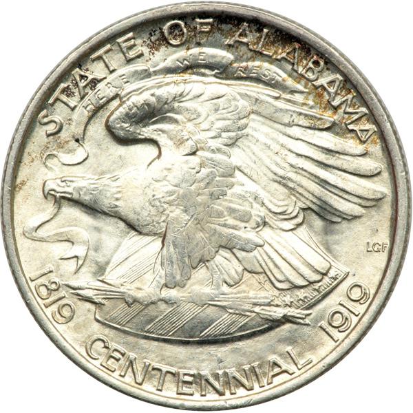 1921 Alabama Half Dollar, no 2 x 2. PCGS graded MS-64. Lightly toned on both sides, the devices are filled with silvery radiance while all design features were fully detailed. Only 6,006 made (PCGS # 9224) .