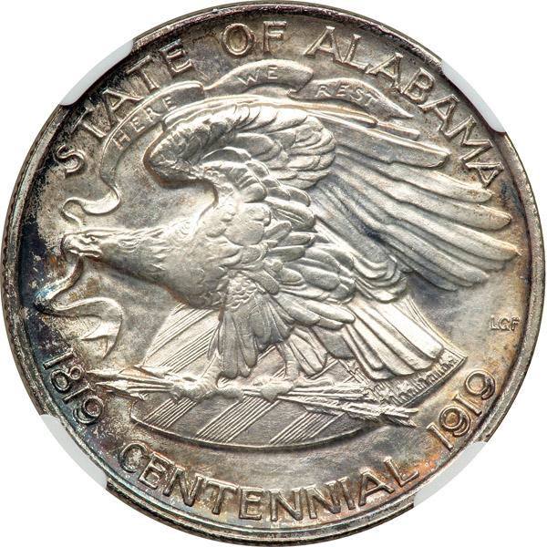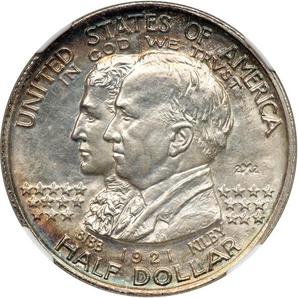 1921 Alabama Half Dollar, with 2 x 2. NGC graded Unc Details, improperly cleaned. Actually a nice coin as it is attractively toned. Only 6,000 minted (PCGS # 9225) .