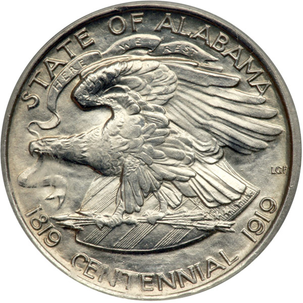 1921 Alabama Half Dollar, with 2 x 2. ICG graded MS-62. A pleasing frosty white specimen.