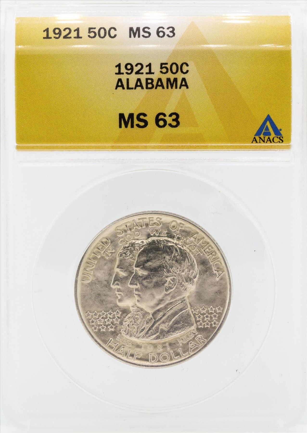 One 1921 Alabama Centennial Commemorative Half Dollar Coin ANACS MS63.