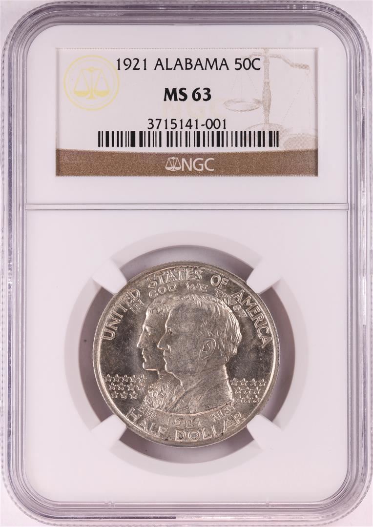 One 1921 Alabama Centennial Commemorative Half Dollar Coin NGC MS63. NGC Certified.