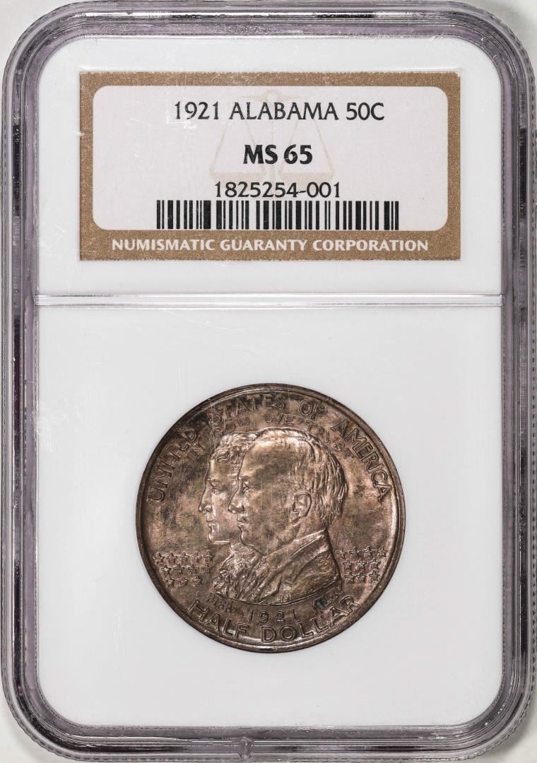 One 1921 Alabama Centennial Commemorative Half Dollar Coin NGC MS65. NGC Certified.