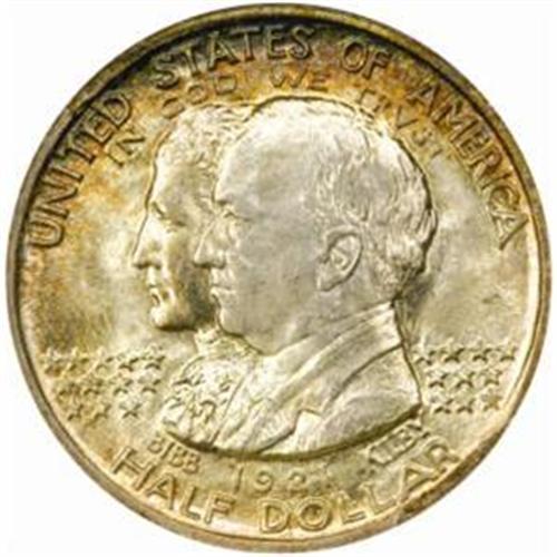 <style type="text/css"> body, td, th { font-family: Arial, Helvetica, sans-serif; font-size: 12px; color: #482424; margin: 0px; padding: 0px; } #header { background-image: url(http://www.bowersandmerena.com/ebay/images/template_v3_01.gif); clear: both; background-color: #590303; border-top-width: 2px; border-top-style: solid; border-top-color: #B38C4F;}#header #header_wrapper { height: 75px; clear: both; width: 800px; margin-right: auto; margin-left: auto; background-image: url(http://www.bowersandmerena.com/ebay/images/template_v3_03.gif); background-repeat: no-repeat; background-position: right; color: #F3EDCC;}#header #header_wrapper #header_logo { float: left; height: 75px; width: 444px; background-image: url(http://www.bowersandmerena.com/ebay/images/template_v3_02.gif); background-repeat: no-repeat; font-size: 10px; text-transform: capitalize; color: #B38C4F;}#header #header_wrapper #header_right { float: left; height: 75px; width: 356px; text-align: right;}#header #header_wrapper #header_right #headerLoginBtn { margin-bottom: 30px;}#header #header_wrapper #header_right input#txtSearch { color: #B49056; border: 1px solid #B49056; width: 175px; padding-top: 3px; padding-right: 3px; padding-bottom: 4px; padding-left: 3px;}#nav { height: 37px; background-image: url(http://www.bowersandmerena.com/ebay/images/template_v3_05.gif); clear: both;}#nav #nav_wrapper { height: 35px; width: 800px; margin-right: auto; margin-left: auto; border-left-width: 1px; border-left-style: solid; border-left-color: #B38C4F;}#nav #nav_wrapper a { padding-right: 15px; padding-left: 15px; border-right-width: 1px; border-right-style: solid; border-right-color: #B38C4F; height: 25px; padding-top: 10px; display: block; float: left; text-decoration: none; font-weight: bold; color: #5D0303;}#nav #nav_wrapper a:hover { color: #B38C4F;}#nav #nav_wrapper #search { float: right; padding-top: 7px;}#nav #nav_wrapper #search #txtSearch { font-family: Arial, Helvetica, sans-serif; font-size: 10px; text-transform: uppercase; color: #D2AE75; border: 1px solid #B38C4F; padding: 3px;}#content_bgd { background-image: url(http://www.bowersandmerena.com/ebay/images/template_v3_09.gif); background-repeat: repeat-y; background-position: center; padding-top: 15px; padding-bottom: 15px; background-color: #FBFBDB;}#content_wrapper { clear: both; height: auto; width: 800px; margin-right: auto; margin-left: auto;}.LotDetailWhite{ line-height:normal; font-size:13px; font-family: arial,helvetica,sans-serif; color: White; font-weight: bold;}.LotDetailInformation{ line-height:normal; font-size: 13px; font-family: arial,helvetica,sans-serif;}.LotDetailMessage{ line-height:normal; font-size: 13px; font-family: arial,helvetica,sans-serif; color: red;}}tr.HeaderAuctionTitle td { color: #000000; font-weight: bold; padding: 2px; background-image: url(http://www.bowersandmerena.com/ebay/images/template_v3_05.gif); background-repeat: repeat-x; border-bottom-width: 1px; border-bottom-style: solid; border-bottom-color: #B38C4F;}table.AuctionSummary a, table.AuctionSummary a:link, table.AuctionSummary a:visited { color: #0000FF; text-decoration: none;}}td.tableHeaderLeft { border-left-width: 1px; border-left-style: solid; border-left-color: #B38C4F;}td.tableHeaderRight { border-right-width: 1px; border-right-style: solid; border-right-color: #B38C4F;}td.tableCellMiddle { border-left-width: 1px; border-left-style: solid; border-left-color: #B38C4F; border-right-width: 1px; border-right-style: solid; border-right-color: #B38C4F; padding: 5px;}tr.footer td { border-top-width: 1px; border-top-style: solid; border-top-color: #B38C4F;}</style></head><body><div id="header"> <div id="header_wrapper"> <div id="header_logo"> </div> <div id="header_right"> </div> </div></div><div id="nav"> <div id="nav_wrapper"> <a href="http://www.bowersandmerena.com">Our eBayLive Auctions</a> <a href="#PaymentInfo">Payment Information</a> <a href="#ShippingInfo">Shipping Information</a> <a href="#About">About Bowers and Merena</a> </div></div><div id="content_bgd"> <div id="content_wrapper"> <table width="100%" border="0" cellpadding="5" cellspacing="0" class="AuctionSummary"> <tbody> <tr class="HeaderAuctionTitle" style="height: 25px;"> <td align="left" class="tableHeaderLeft" > </td> <td align="center" class="tableHeaderRight"> <span style="font-size: large;">Lot #887. 1921 Alabama Centennial. MS-67 (NGC).</span> </td> </tr> <tr> <td colspan="3" class="tableCellMiddle"> The Alabama Centennial issues of 1921 are two of most challenging classic Commemoratives to locate without at least a few grade-limiting abrasions. The result in today's market is that even Gems in MS-65 are scarce and can seem elusive even though a fair number of coins are apt to cross the auction block in any given year of numismatic trading. Both the Plain and 2x2 varieties are conditionally rare in MS-66, while Superb Gems in MS-67 are the province of the most advanced numismatic buyers.A Condition Census piece, this is a simply beautiful coin that really needs to be seen to be fully appreciated. The surfaces are awash in satin-to-softly frosted luster that is as bright and fresh as the day the coin fell from the dies. The luster is adorned in delicate golden iridescence that, along the upper-obverse border, yields to crescents of rich cobalt-blue and copper-russet patina. Even trivial abrasions are hardly evident, and the strike is sufficiently bold for this often poorly impressed type. Highly recommended for inclusion in the finest collection of United States Commemorative coinage.