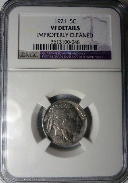 1921 BUFFALO NICKEL NGC VF, SAYS CLEANED, WHO KNOWS? EST. $25.00-$35.00