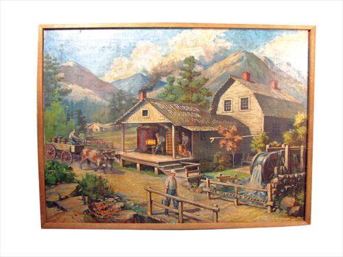 1921 Blue Ribbon Bourbon Sign, simulated oil painting. A very rare and desirable sign. This sign was in our last auction but did not get paid for. Excellent condition. 38 X 28 inches.