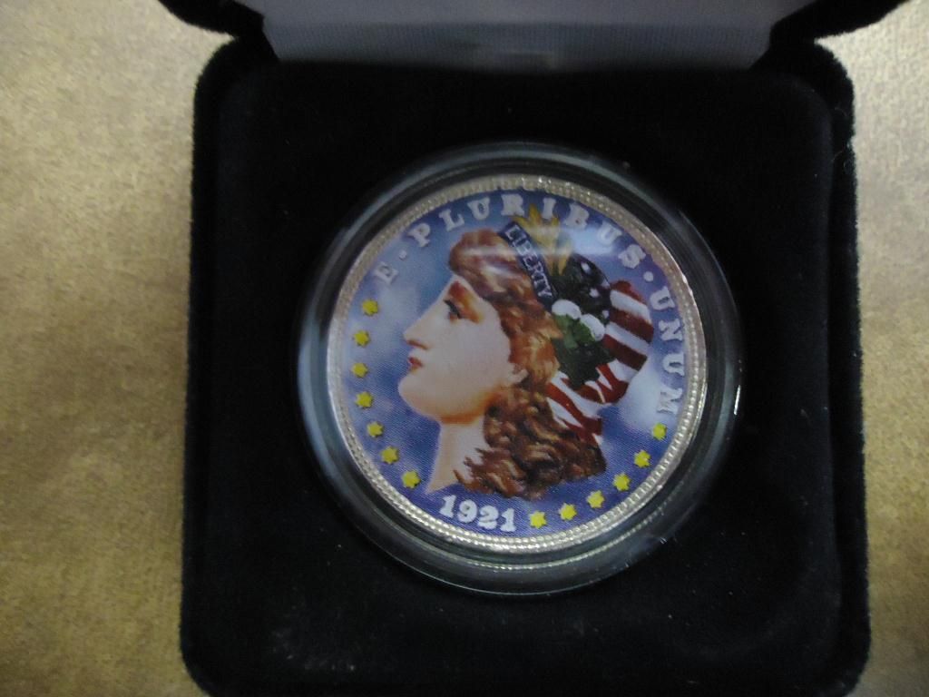 1921 COLORIZED MORGAN SILVER DOLLAR IN CASE