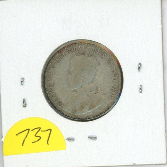1921 Canadian Silver 25 Cents. Key Date. Mintage of 597,337. VG-8.