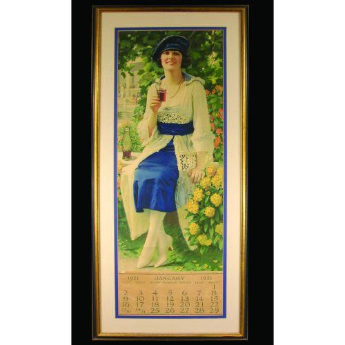 1921 Coca Cola Calendar, full pad. Framed under glass. Few creases at 8:00, no metal band otherwise excellent condition. 12 X 31 inches image only.