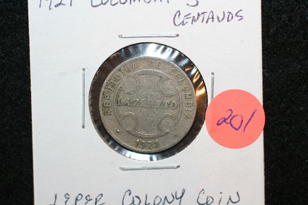 1921 Columbia 5 Centavos Foreign Coin; Leper Colony Coin