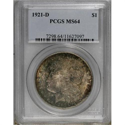 <B>1921-D $1 MS64 PCGS.</B></I> . PCGS Population (3453/1386). NGC Census: (4138/1908). Mintage: 20,345,000. Numismedia Wsl. Price for NGC/PCGS coin in MS64: $116. (#7298)<BR><BR><b>Shipping:</b> Coins & Currency (<a target="_blank" href="http://www.heritageauctions.com/common/shipping.php">view shipping information</a>)