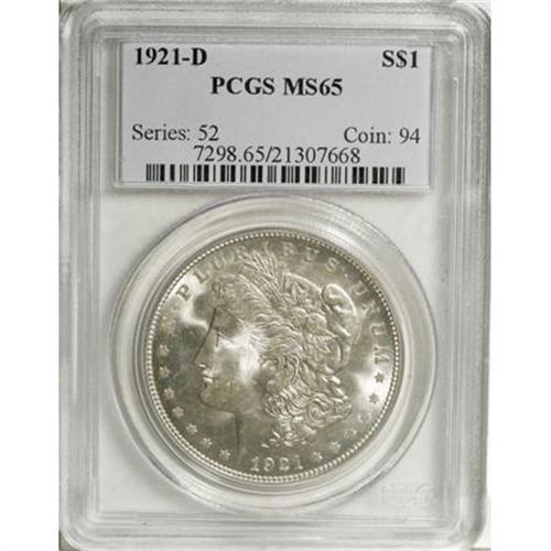 <B>1921-D $1 MS65 PCGS.</B></I> PCGS Population (1174/182). NGC Census: (1656/222). Mintage: 20,345,000. Numismedia Wsl. Price for NGC/PCGS coin in MS65: $264. (#7298)<BR><BR><b>Shipping:</b> Coins & Currency (<a target="_blank" href="http://www.heritageauctions.com/common/shipping.php">view shipping information</a>)