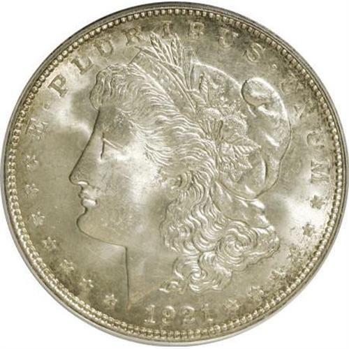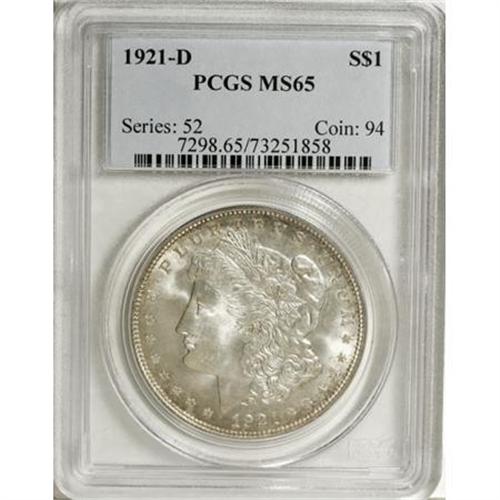 <B>1921-D $1 MS65 PCGS.</B></I> PCGS Population (1176/182). NGC Census: (1656/222). Mintage: 20,345,000. Numismedia Wsl. Price for NGC/PCGS coin in MS65: $264. (#7298)<BR><BR><b>Shipping:</b> Coins & Currency (<a target="_blank" href="http://www.heritageauctions.com/common/shipping.php">view shipping information</a>)