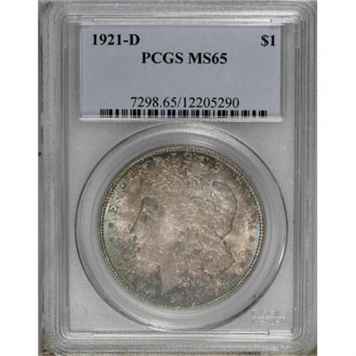 <B>1921-D $1 MS65 PCGS.</B></I> . PCGS Population (1209/186). NGC Census: (1683/225). Mintage: 20,345,000. Numismedia Wsl. Price for NGC/PCGS coin in MS65: $260. (#7298)<BR><BR><b>Shipping:</b> Coins & Currency (<a target="_blank" href="http://www.heritageauctions.com/common/shipping.php">view shipping information</a>)