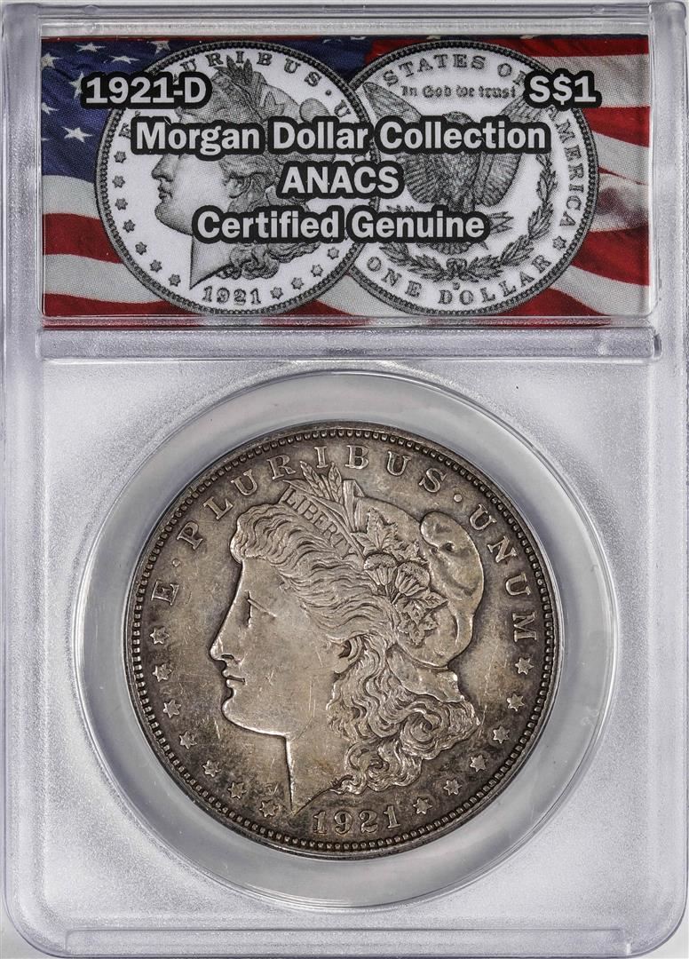 One 1921-D $1 Morgan Silver Dollar Coin ANACS Genuine. ANACS Certified.