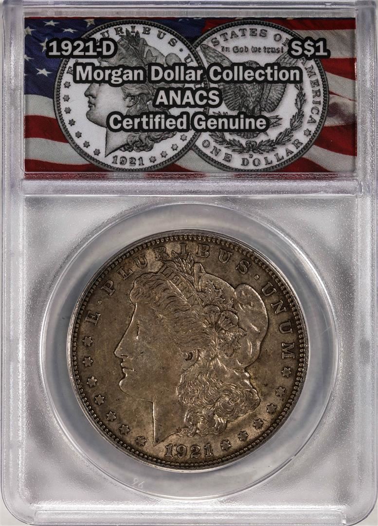 One 1921-D $1 Morgan Silver Dollar Coin ANACS Genuine. ANACS Certified.
