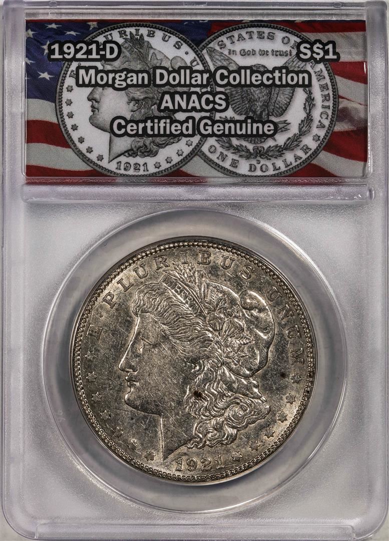 One 1921-D $1 Morgan Silver Dollar Coin ANACS Genuine. ANACS Certified.