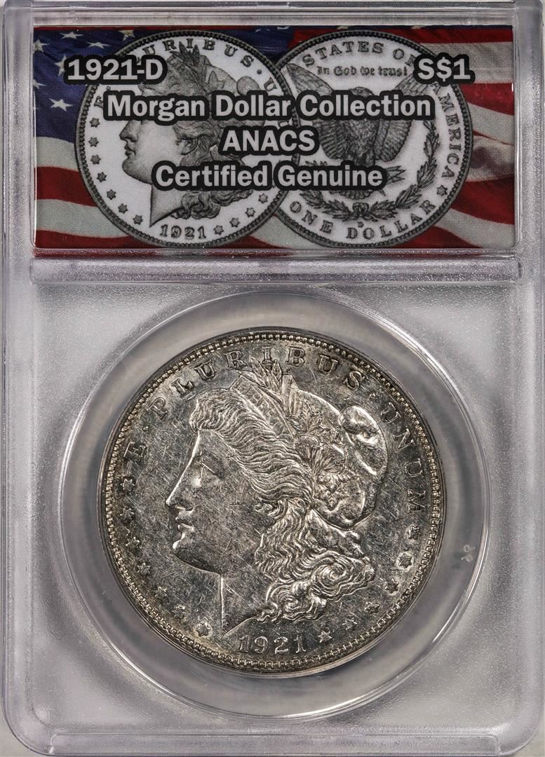 One 1921-D $1 Morgan Silver Dollar Coin ANACS Genuine. ANACS Certified.