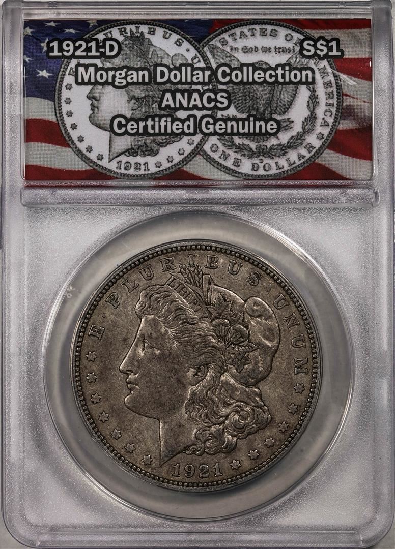 One 1921-D $1 Morgan Silver Dollar Coin ANACS Genuine. ANACS Certified.