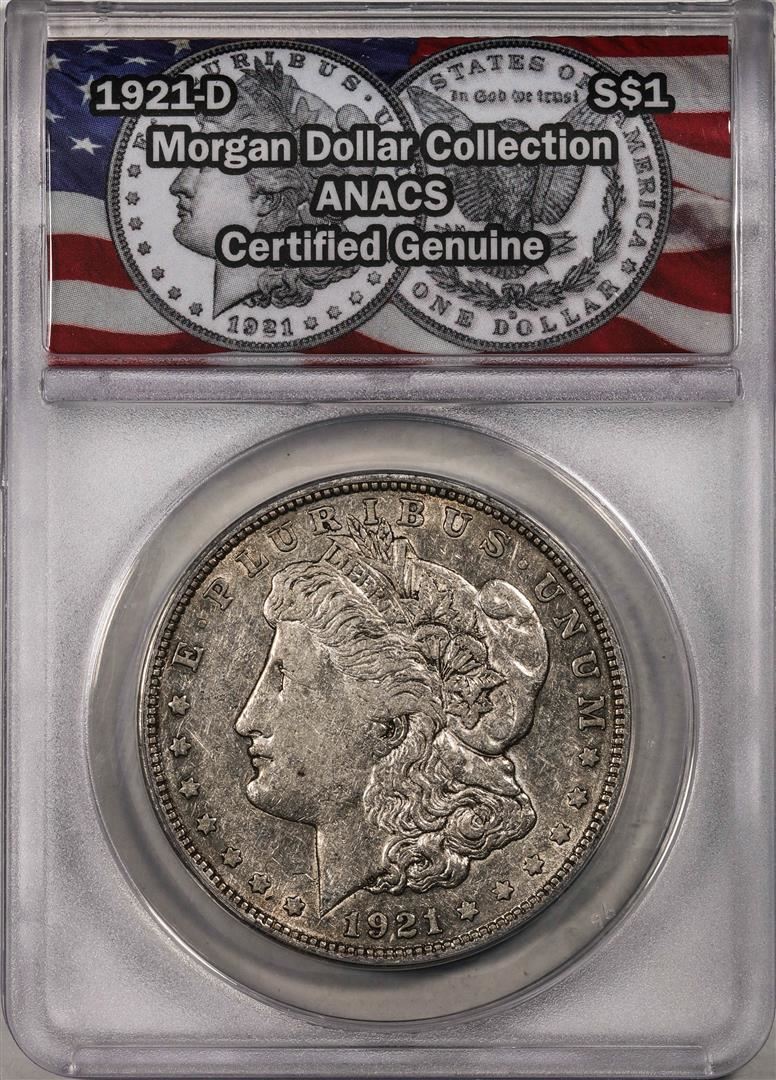 One 1921-D $1 Morgan Silver Dollar Coin ANACS Genuine. ANACS Certified.