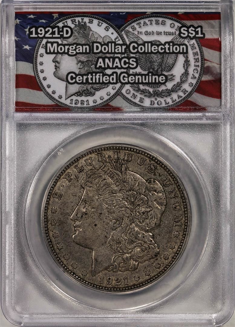 One 1921-D $1 Morgan Silver Dollar Coin ANACS Genuine. ANACS Certified.