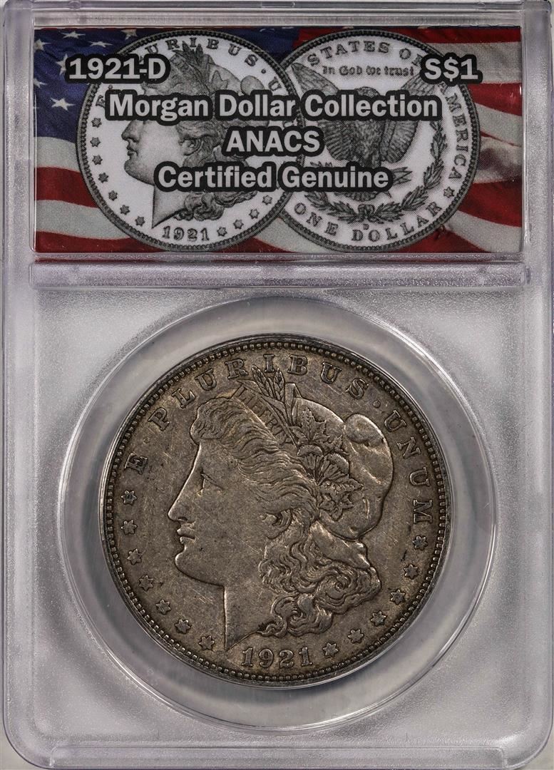 One 1921-D $1 Morgan Silver Dollar Coin ANACS Genuine. ANACS Certified.