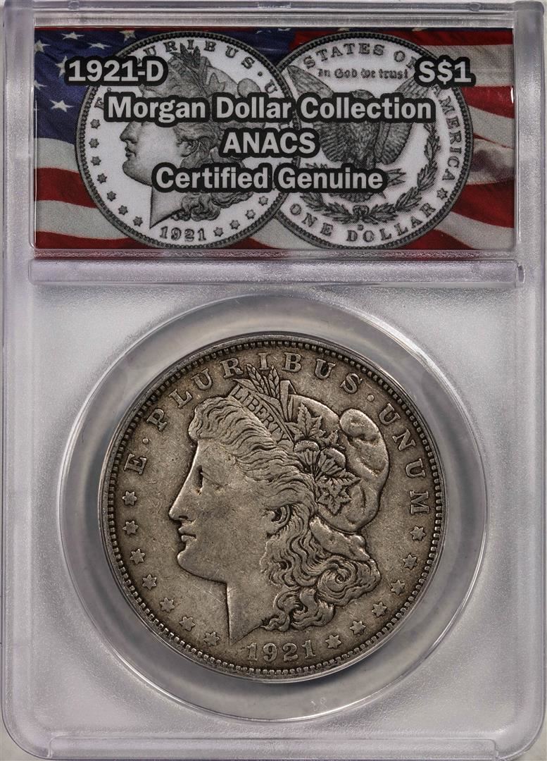 One 1921-D $1 Morgan Silver Dollar Coin ANACS Genuine. ANACS Certified.