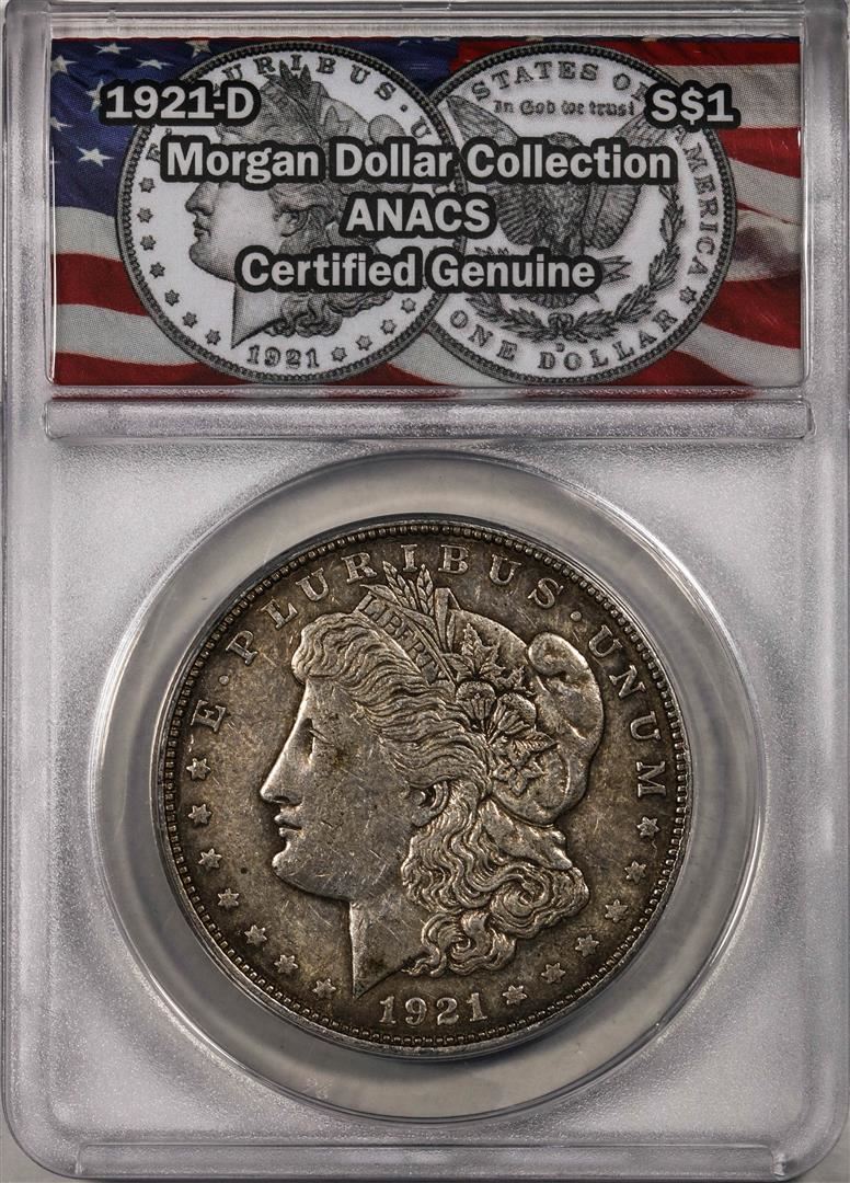 One 1921-D $1 Morgan Silver Dollar Coin ANACS Genuine. ANACS Certified.