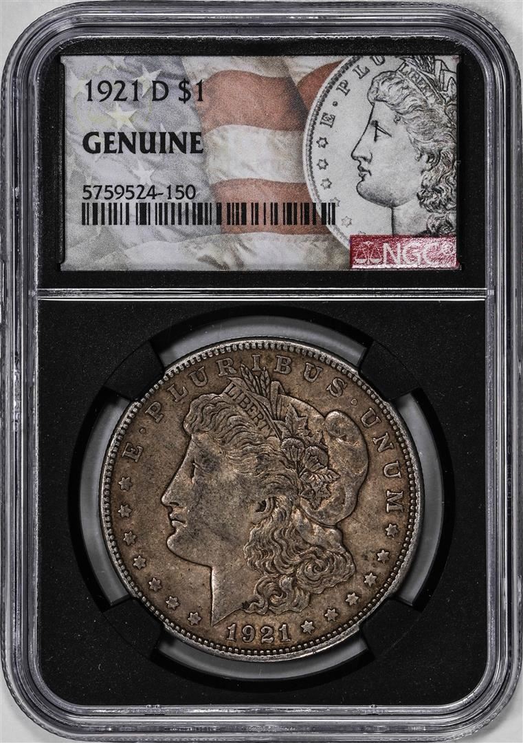 One 1921-D $1 Morgan Silver Dollar Coin NGC Genuine. NGC Certified.