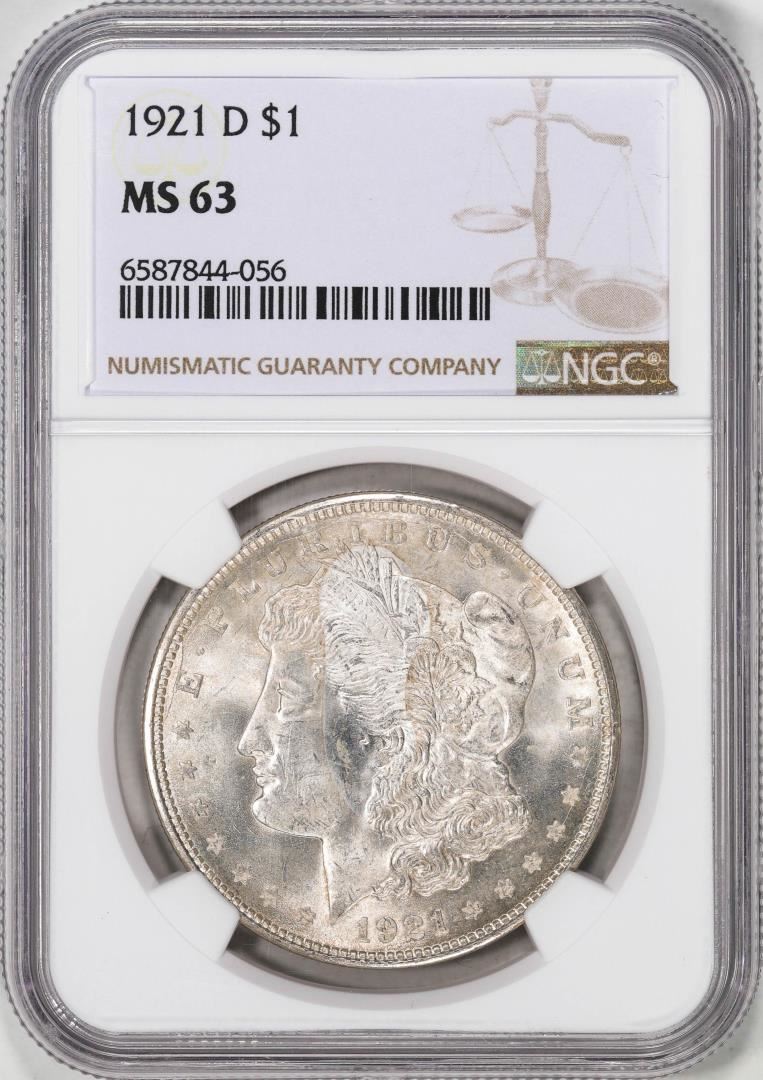 One 1921-D $1 Morgan Silver Dollar Coin NGC MS63. NGC Certified.
