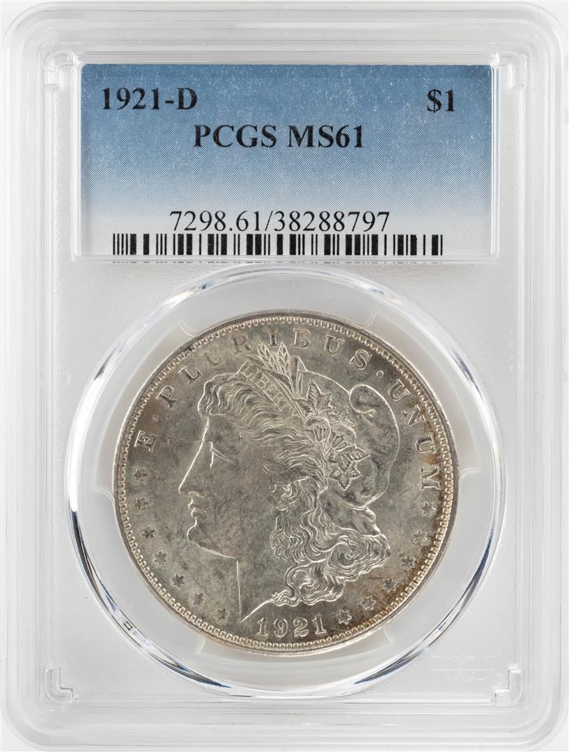 One 1921-D $1 Morgan Silver Dollar Coin PCGS MS61. PCGS Graded.