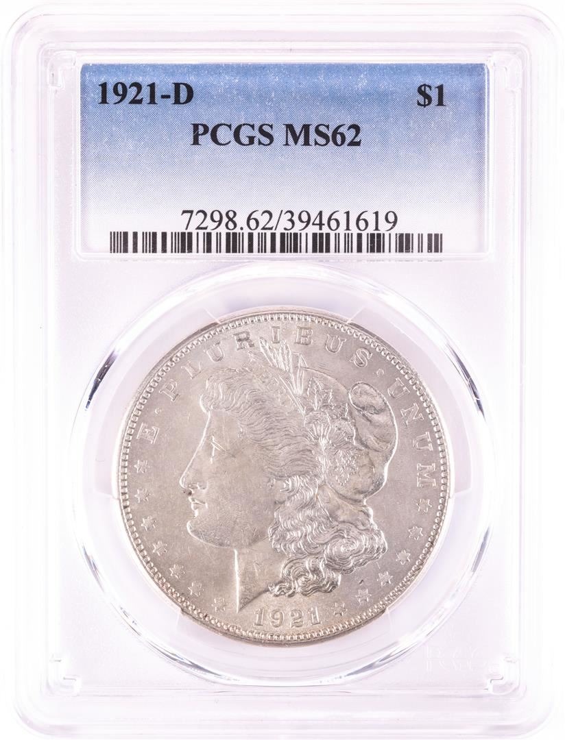 One 1921-D $1 Morgan Silver Dollar Coin PCGS MS62. PCGS Graded.