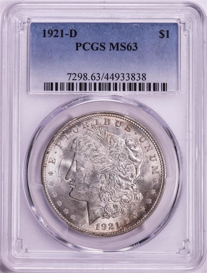 One 1921-D $1 Morgan Silver Dollar Coin PCGS MS63. PCGS Graded.